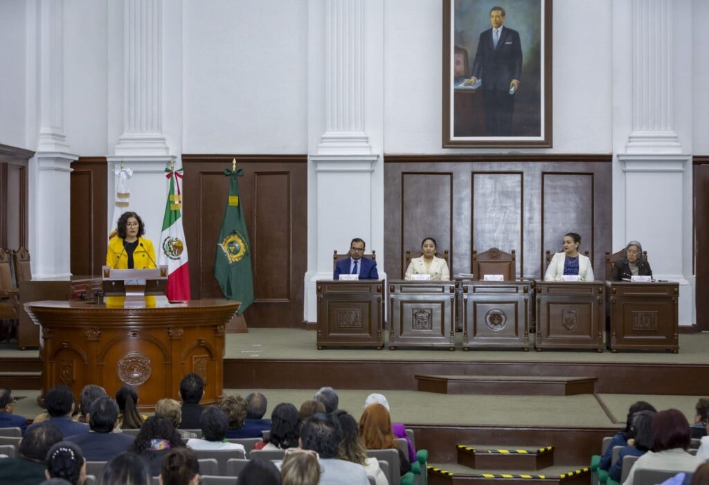 Además, Fernando Díaz Juárez, Presidente del Órgano de Administración Judicial, Elizabeth Rodríguez Colín y Pablo Espinosa Márquez, integrantes del órgano; Karla Ivonne Díaz Iniesta, Nancy Flores Mendoza y Jesús Ángel Cadena Alcalá, integrantes del Tribunal de Disciplina Judicial, y Raymundo César Martínez García, Presidente de El Colegio Mexiquense.