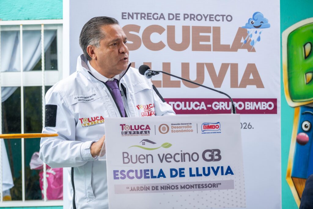 El alcalde Ricardo Moreno y Grupo Bimbo inauguraron como “Escuela de Lluvia” al Jardín de Niños María Montessori, de San Pedro Totoltepec, con lo que Toluca impulsa acciones concretas para enfrentar la escasez hídrica, fortalecer el uso responsable del agua y reducir la huella ambiental.