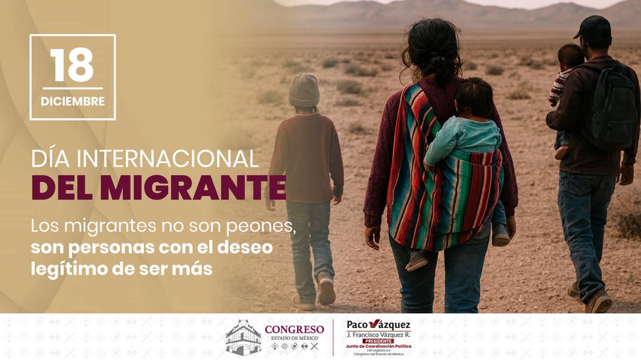En el marco del Día Internacional del Migrante, el diputado Francisco Vázquez Rodríguez, Presidente de la Junta de Coordinación Política de la LXII Legislatura mexiquense expresó vía sus redes sociales que el esfuerzo de los migrantes sostiene economías;