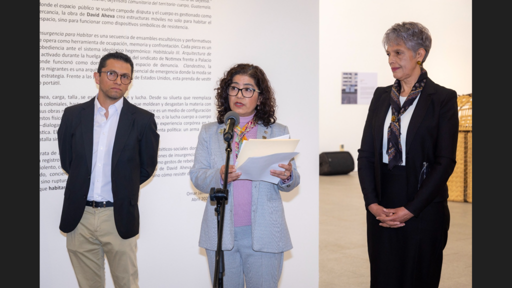 La rectora de la Universidad Autónoma del Estado de México (UAEMéx), Martha Patricia Zarza Delgado, inauguró la exposición “Tácticas de Insurgencia para Habitar”, una propuesta artística que invita a repensar la relación entre el cuerpo, el espacio y la acción, del artista y egresado universitario David Aheva, en el Museo Universitario “Leopoldo Flores” (MULF).