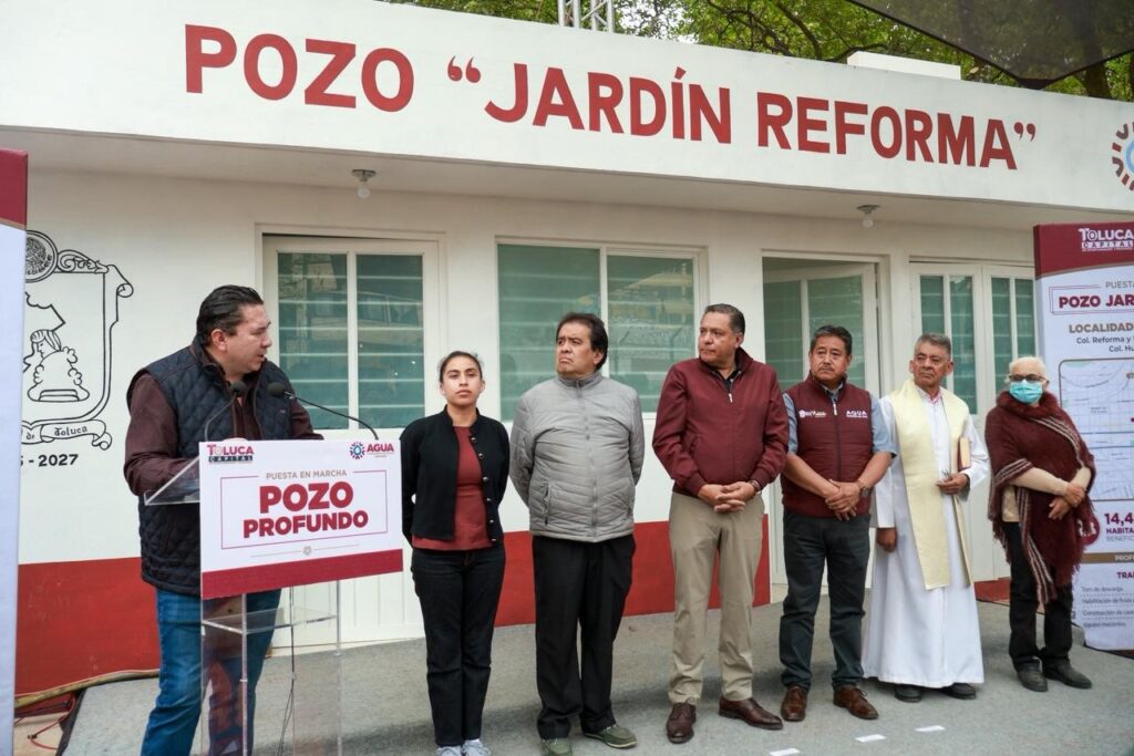 El alcalde Ricardo Moreno inauguró el Pozo Jardín Reforma en beneficio de más de 14 mil 400 vecinos de las colonias Ferrocarriles Nacionales, Huitzila y Doctores, quienes durante 30 años han tendido fallas en el suministro y a partir de ahora, tendrán garantizado su acceso al líquido. Hasta el momento se han perforado ocho pozos de un total de 21 que se contemplan poner en funcionamiento antes del mes de abril del 2026 para asegurar un suministro adecuado y calendarizado para toda la población toluqueña.