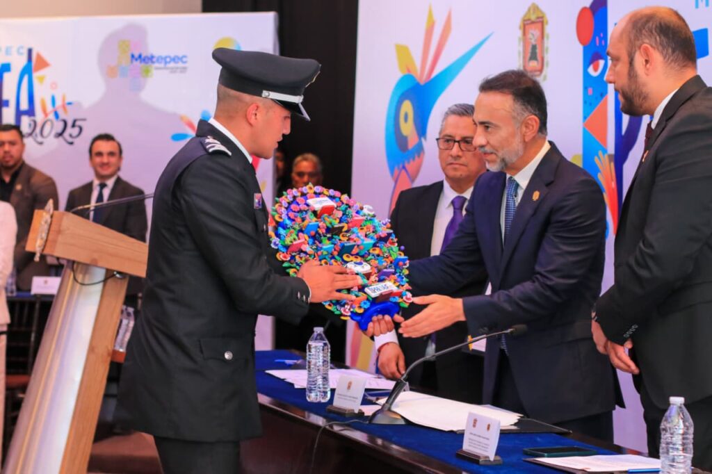 El ayuntamiento reconoció a 16 destacados personajes, vecinas y vecinos, que obtuvieron la “Presea Metepec 2025”, durante Sesión Solemne de Cabildo para conmemorar el 177 aniversario del nombramiento de Villa a Metepec, encabezada por el alcalde Fernando Flores Fernández, quien reconoció el esfuerzo y ejemplo de honorabilidad para las presentes y futuras generaciones.