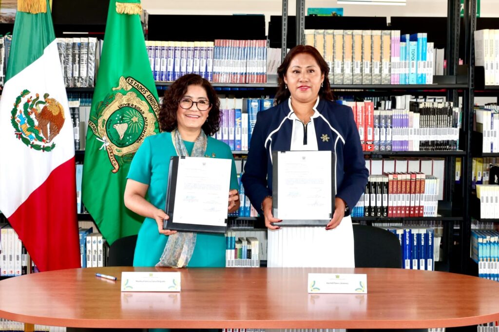 Acompañada por la secretaria de Identidad y Cultura de la UAEMéx, Cynthia Ortega Salgado, Zarza Delgado destacó que la firma de este convenio fortalece el vínculo entre la retribución social universitaria, la vocación de servicio público y la atención a la educación de las juventudes, en concordancia con las directrices impulsadas por la presidenta de México, Claudia Sheinbaum Pardo, y la gobernadora del Estado de México, Delfina Gómez Álvarez.