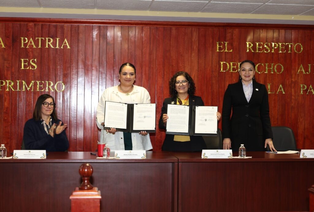 La rectora de la Universidad Autónoma del Estado de México (UAEMéx), Martha Patricia Zarza Delgado, y la titular de la Secretaría del Medio Ambiente y Desarrollo Sostenible de la entidad, Alhely Rubio Arronis, firmaron un convenio general de participación, que atestiguó la presidenta municipal de Amecameca, Ivette Topete García.