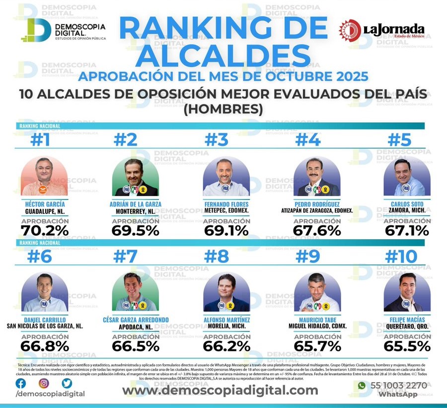De acuerdo con Demoscopia Digital, seguimos en el top 3 de alcaldes mejor evaluados de México