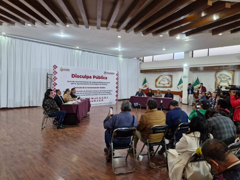 Nos informan que en cumplimiento a la Recomendación 10/2024, la Comisión de Derechos Humanos del Estado de México (CODHEM), atestiguó la disculpa pública institucional ofrecida por el Ayuntamiento de Ecatepec de Morelos a familiares de una persona quien desafortunadamente perdió la vida, a consecuencia del uso excesivo de la fuerza, en una detención por parte de policías municipales.